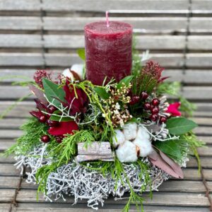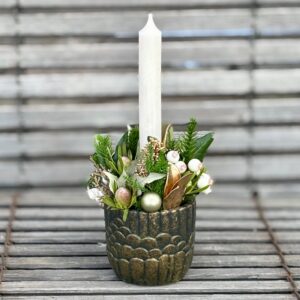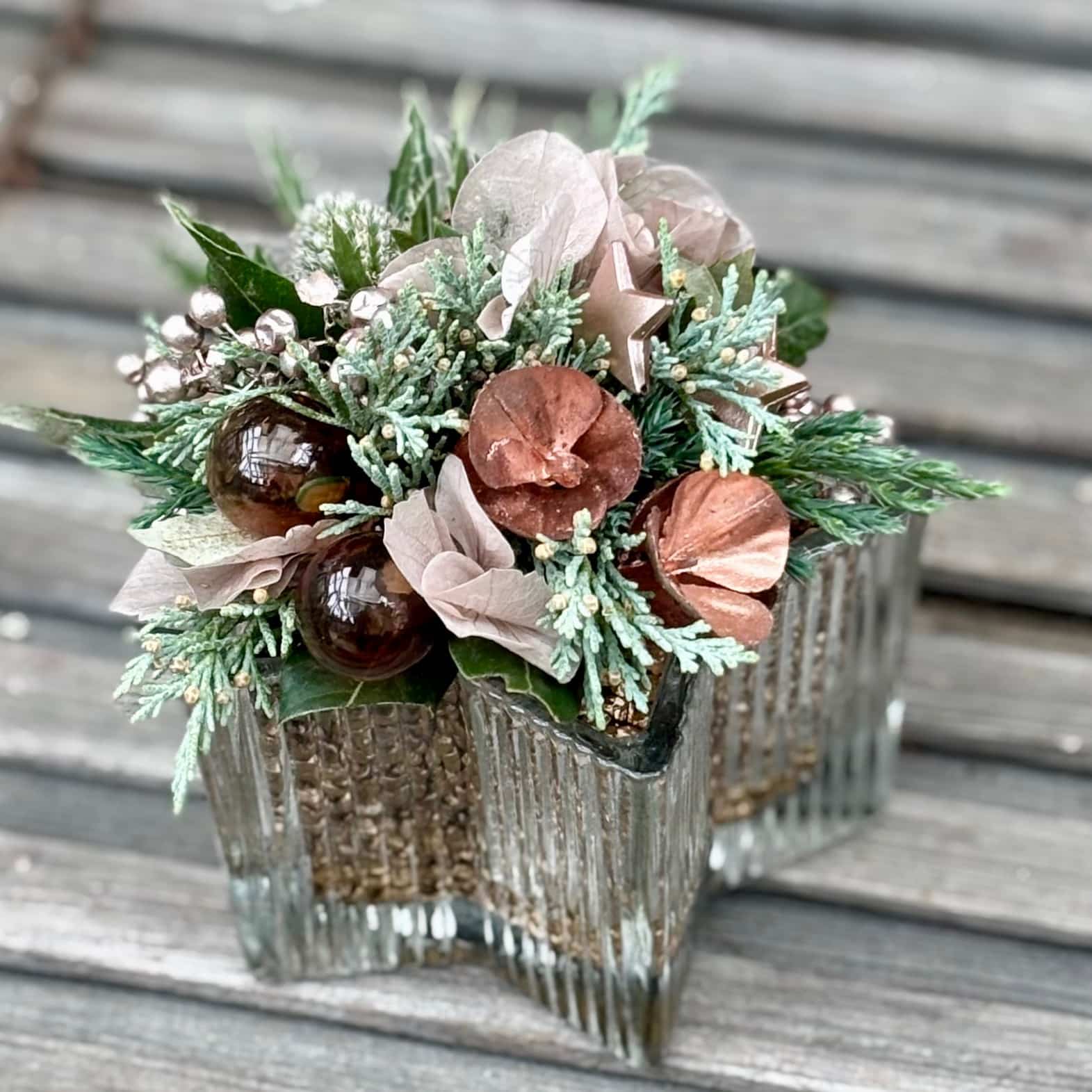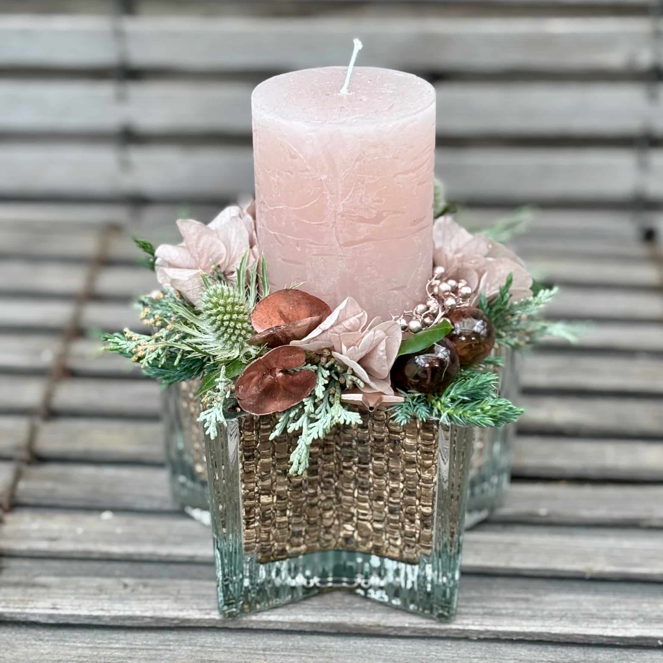 Glasstern mit Füllung aus Kerze und passender Deko.