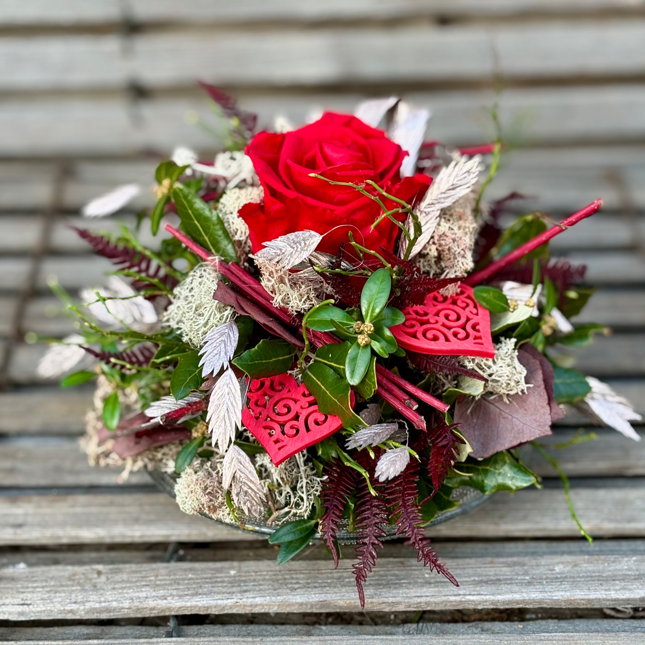 Gefriergetrocknete Rose mit floraler Deko.