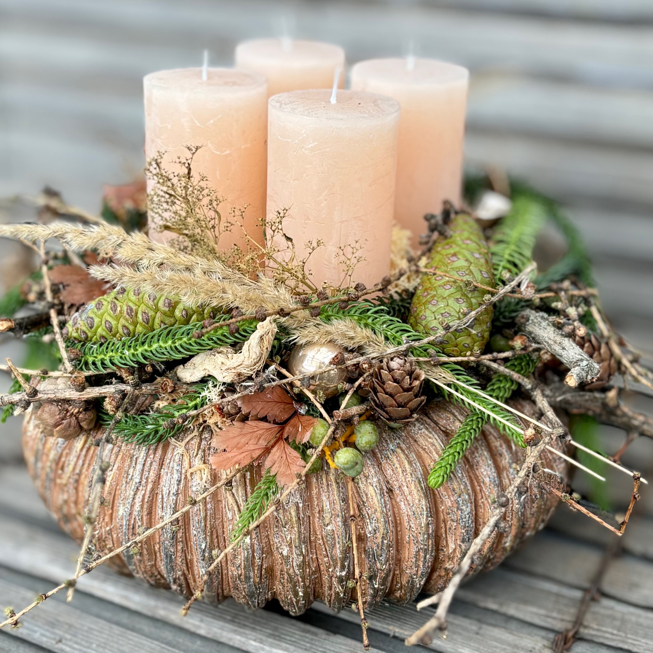 Massive Keramikserie mit Kerzen, Araucaria und passender Deko.